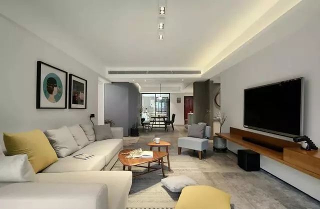 在电视墙的处理,设计师巧妙的利用留白艺术设计,简单的墙面,搭配上电视柜与绿植点缀,留下无尽的想象空间。